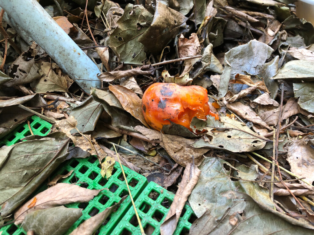柿酢を作った時に出たヘタなどを別の場所に捨てていたのですが、その柿には目もくれなかったようですね。